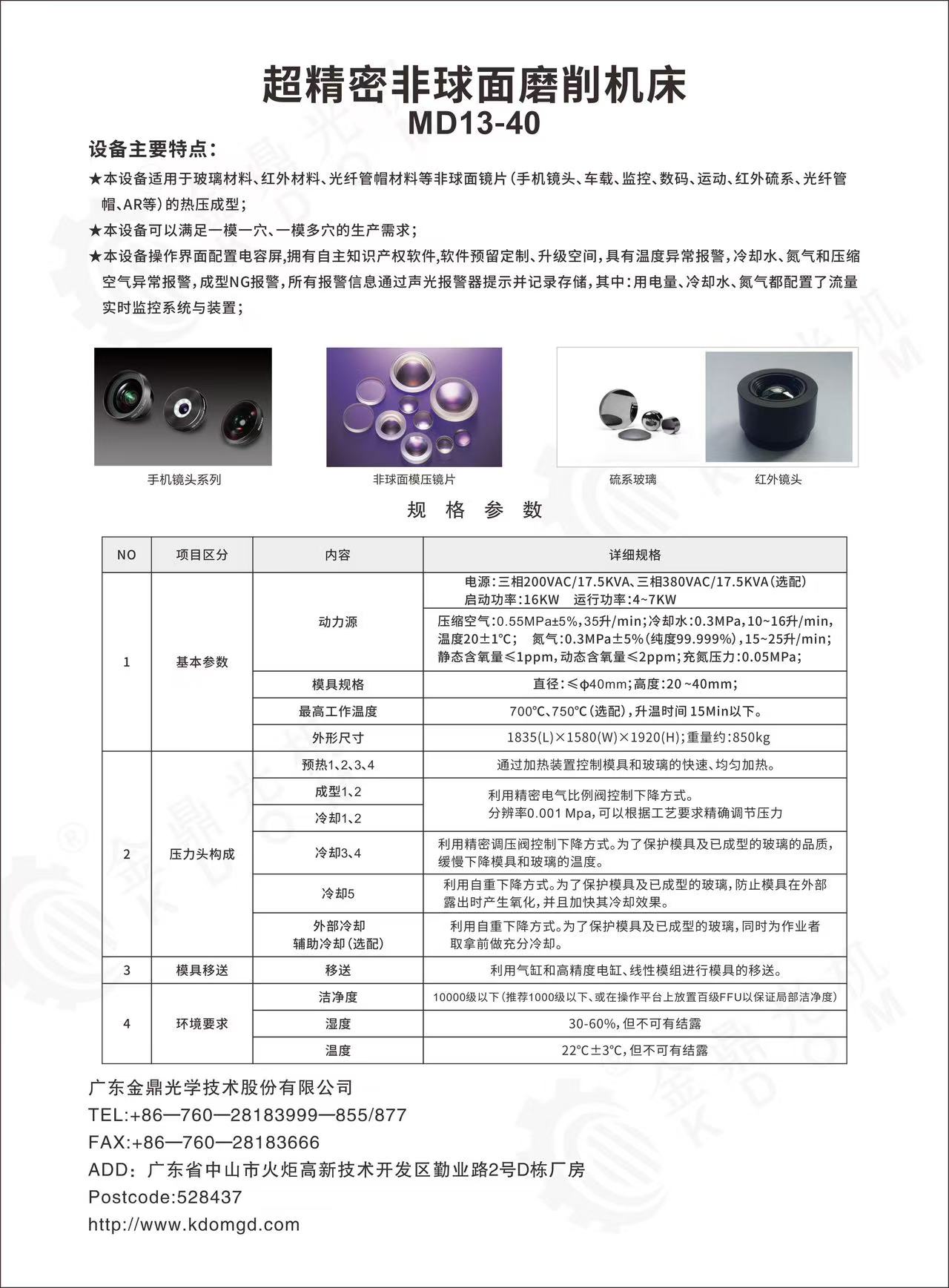 ★本設(shè)備適用于玻璃材料、紅外材料、光纖管帽等非球面鏡片(手機(jī)鏡頭、車載、監(jiān)控、數(shù)碼、運(yùn)動(dòng)、紅外硫系、光纖管帽、AR等)的熱壓成型;