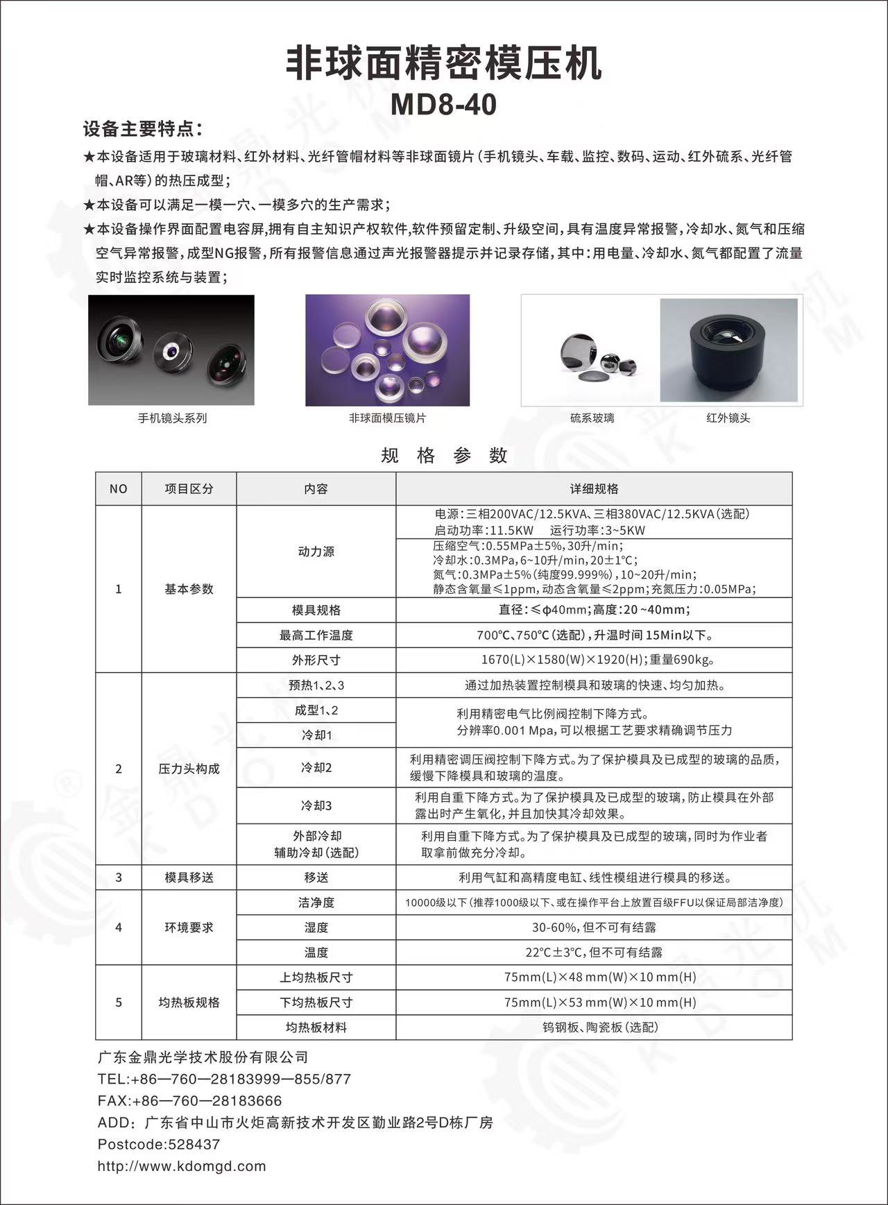 ★本設(shè)備適用于玻璃材料、紅外材料、光纖管帽等非球面鏡片(手機(jī)鏡頭、車(chē)載、監(jiān)控、數(shù)碼、運(yùn)動(dòng)、紅外硫系、光纖管帽、AR等)的熱壓成型;